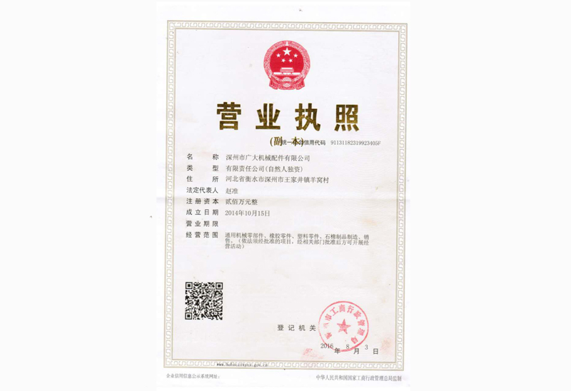 深州市廣大機(jī)械配件有限公司始建于2000年,是專(zhuān)業(yè)生產(chǎn)橡膠、塑料用品、沖壓件的民營(yíng)企業(yè)。我公司地處古城深州,石德鐵路、京九鐵路、石黃高速、大廣高速在此交匯,交通十分便利,地理優(yōu)勢(shì)優(yōu)越。工廠(chǎng)占地面積3000平米,建筑面積1500平米,現(xiàn)有職工50名,專(zhuān)業(yè)技術(shù)人員5名,固定資產(chǎn)1200萬(wàn)... 詳細(xì)>>